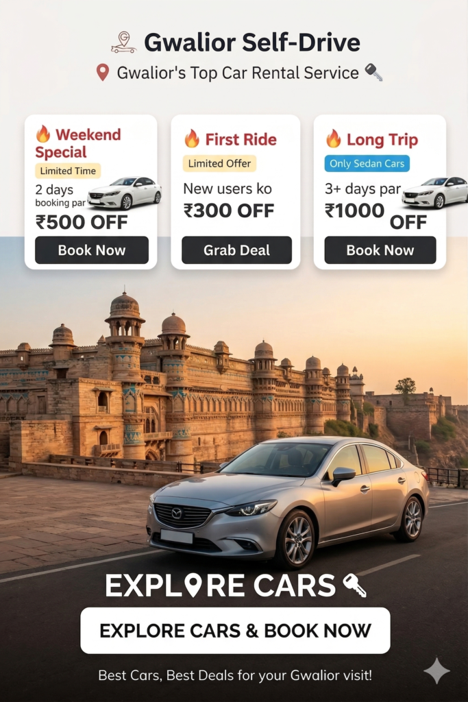 Book Your Vehicle Now Name Phone Number Book Your Bike or Scooty Today Book Now Our self Drive Cars Swift Dzire 5 Seater · MT · AC ₹2400 / Day Call Now Mahindra Thar 4 Seater · MT · AC ₹4500 / Day Call Now Baleno 5 Seater · MT · AC ₹2400 / Day Call Now Swift 5 Seater · MT · AC ₹2200 / Day Call Now Punch 5 Seater · MT · AC ₹2400 / Day Call Now XUV 700 7 Seater · MT · AC ₹5500 / Day Call Now Fronx 5 Seater · AT · AC ₹2400 / Day Call Now Creta 5 Seater · AT · AC ₹2300 / Day Call Now i20 5 Seater · AT · AC ₹2300 / Day Call Now Ertiga 7 Seater · MT · AC ₹2400 / Day Call Now Our SelfDrive Bikes Activa 2 Seater · Automatic · Self Start ₹500 / Day Call Now Tvs jupiter 2 Seater · Gearless · Petrol ₹500 / Day Call Now Royal Enfield 2 Seater · 350cc · Petrol ₹800 / Day Call Now Royal Enfield Hunter 2 Seater · Manual · Petrol ₹800 / Day Call Now Pulsar 2 Seater · Manual · Petrol ₹600 / Day Call Now Hero HF Deluxe 2 Seater · Gear · Petrol ₹500 / Day Call Now Tvs Raider 2 Seater · Gear · Petrol ₹600 / Day Call Now Why Choose Us 🚗 Affordable Pricing We offer competitive prices with complete transparency. No hidden charges. 🧼 Well-Maintained Vehicles All our cars and bikes are clean, regularly serviced, and safety checked. 💸 No Hidden Charges What you see is what you pay. No extra or surprise fees. 🕒 24/7 Customer Support Our support team is available anytime to help you. "Reviews padhein aur befikar hokar ride enjoy karein." Posted on Sachin Karnawat Trustindex verifies that the original source of the review is Google. Best experience and best car rental in gwalior Posted on Suraj Rathaur Trustindex verifies that the original source of the review is Google. Good service Posted on Monu Kushwah Trustindex verifies that the original source of the review is Google. Best car rental in gwalior well maintained car Posted on Jitendra Prajapati Trustindex verifies that the original source of the review is Google. Best car rental in gwalior Posted on Rinku Prajapati Trustindex verifies that the original source of the review is Google. Excellent service Posted on Heera Kushwha Trustindex verifies that the original source of the review is Google. Good service Posted on Sunny Kushwah Trustindex verifies that the original source of the review is Google. Very nice 👍 Posted on Sonu Tyagi Trustindex verifies that the original source of the review is Google. Good service Posted on Asha Kushwah Trustindex verifies that the original source of the review is Google. Good experience Book Your Vehicle Now Name Phone Number Book Now Call Now 📍 Our Address EasySelfDrive – Car & Bike Rental Chanakyapuri , Thatipur , gwalior 474011India